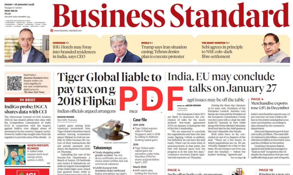 There’s no problem; you’ll get the PDF of all newspapers, whether it’s Business Standard or any other. Every PDF will always be available for free on this website. This website is created solely to help students, not for any business purpose. So, please share this website with your friends and let them know about it. You can download it from here, there’s no problem.